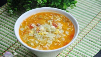 面琪、雞蛋、胡蘿卜、西紅柿、小蔥、香菜、色拉油、香油、胡椒粉、食鹽
