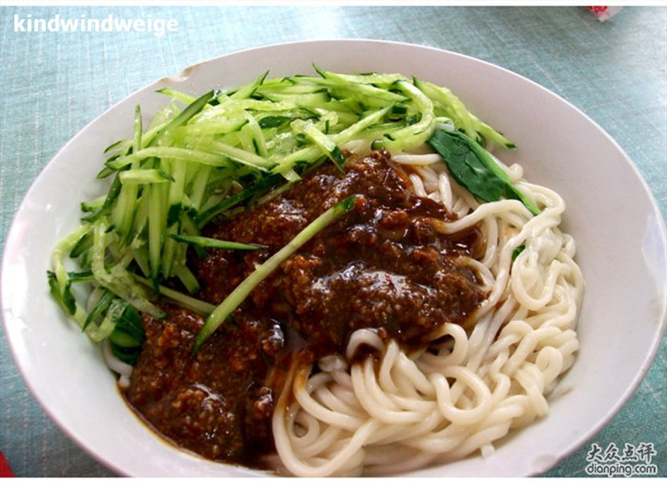 材料:面條、豬肉、豆瓣醬、豆豉、香菜生姜、大蒜、黃瓜、紫甘藍